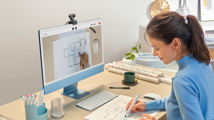 Link可敞开桌面形式,无需额定配件,Link可向下滚动镜头俯拍桌面,并凭仗图画算法,主动对俯拍画面进行梯形校对,明晰展现桌面上的细节。视频会议期间,用户能够在展现正面和俯拍展现文件之间轻松切换。